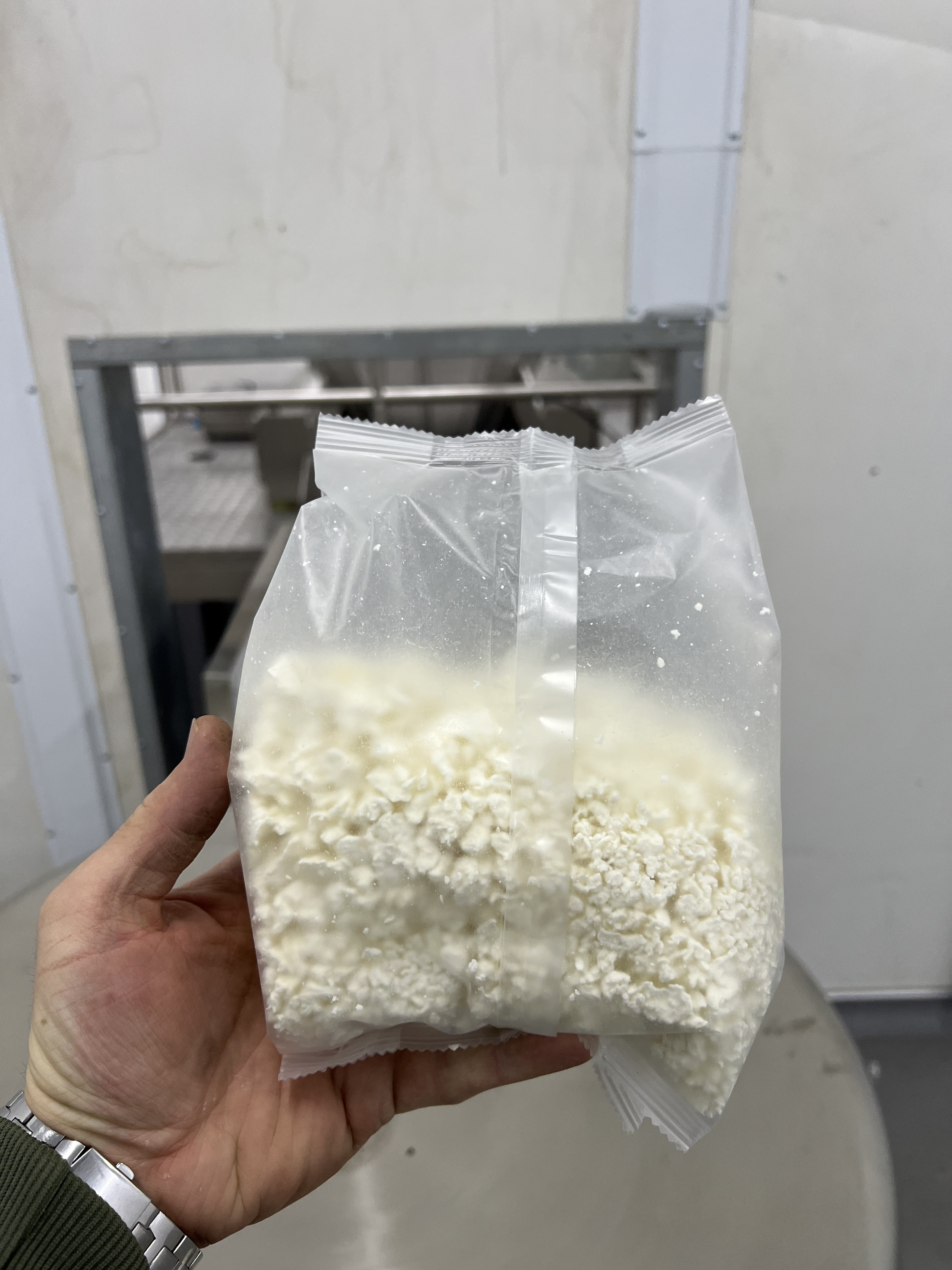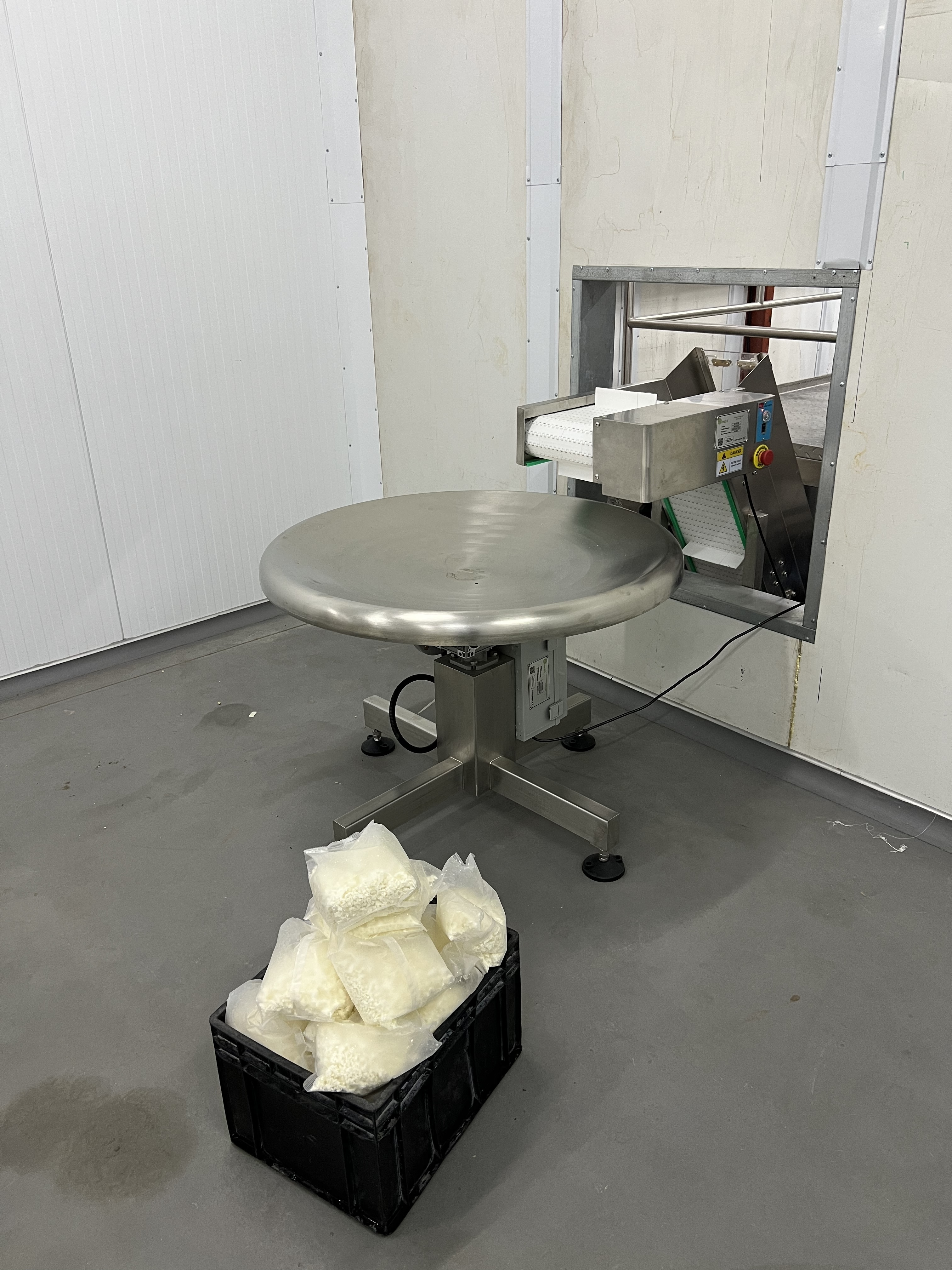 На перший погляд, завдання було стандартним: пакування сирку масою 350 г в пакет з додаванням порції рідини. Проте головною складнощою вимогою від клієнта стало нестандартне розміщення обладнання. Клієнт наполіг на тому, щоб основна упаковочна машина була встановлена в спеціально підготовлений приямок (углиблення в підлозі), а завантажувальний та відвідний транспортери залишалися на рівні основного цеху. Це було необхідно для організації ергономічного робочого процесу та інтеграції лінії в існуючий виробничий ланцюг.
