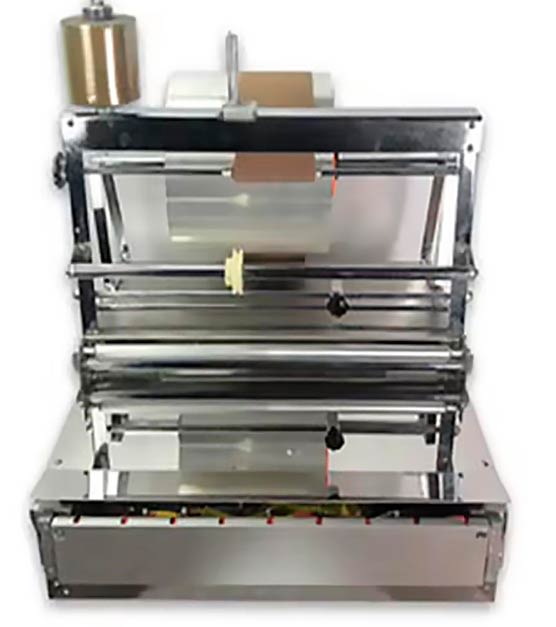 Машина имеет компактные размеры - легко поместиться на столе. Потребляемая мощность целофанатора - 1,5 кВт. Работает от сети