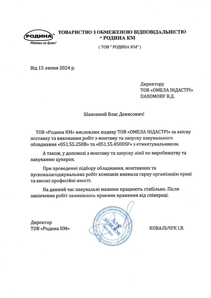 Клиент отметил высокую организацию труда и профессиональные качества команды OMELA, оставив положительный отзыв о сотрудничестве.